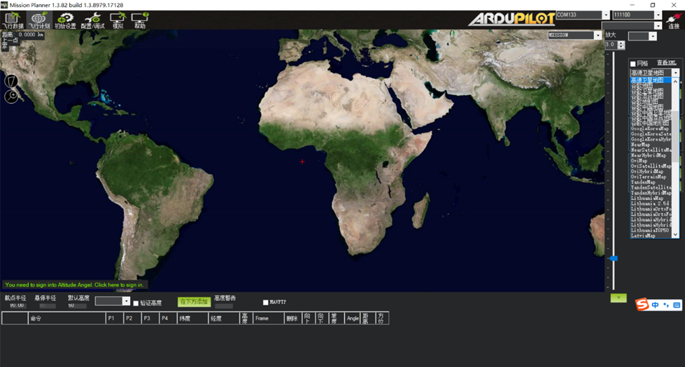 玩家若无法加载实时卫星地图,地面站的“飞行任务”页面,右边选择地图源。一般建议选择“高德卫星地图”。选择后关闭地面站,点击运行MissionPlanner调参软件,此后地面站的地图源则在线调用“高德卫星地图”