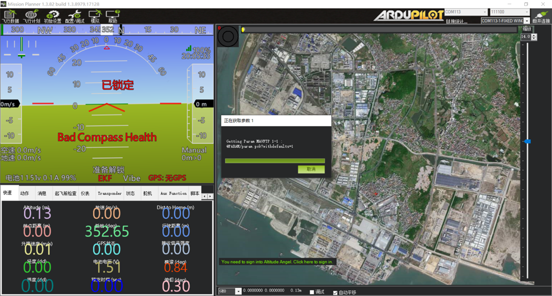 点击连接,稍等几秒,软件在读取飞控的数据。