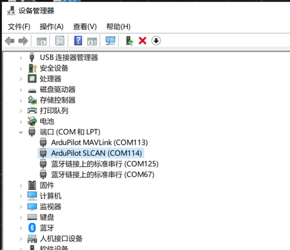 若连接USB后无法在端口下拉菜单中找到飞控选项。则需要检查电脑是否正确识别飞控驱动程序并分配端口。在电脑的设备管理器的端口栏进行查看。若没有分配端口号,则需要安装对应的驱动程序。