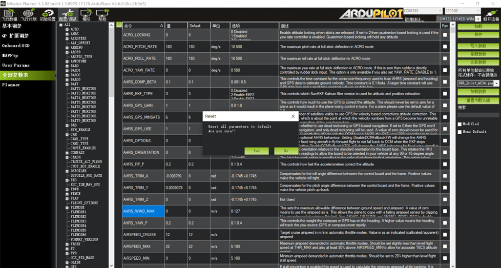 第1节:地面站连接与重置默认参数。 打开MissionPlanner调参软件。