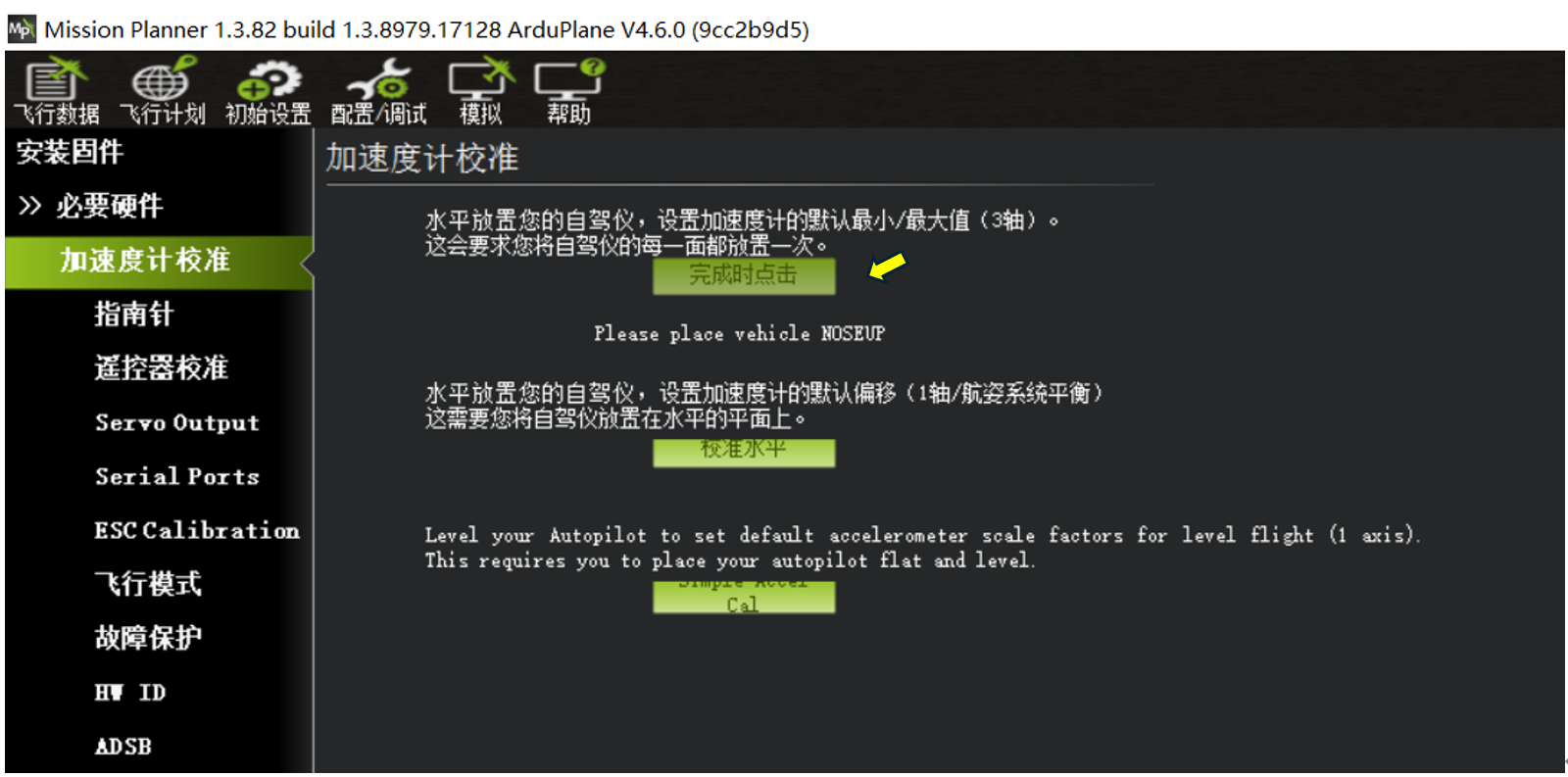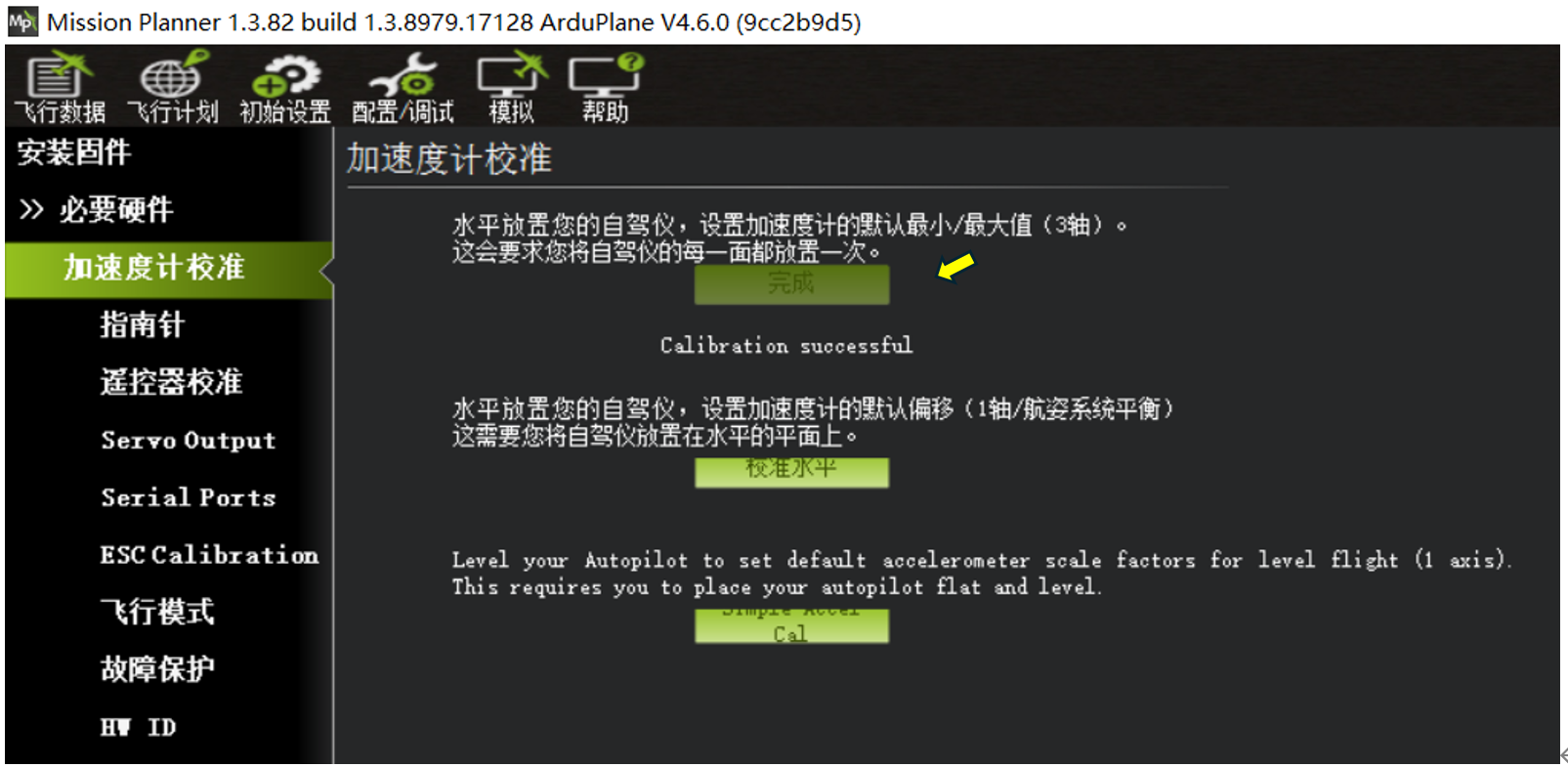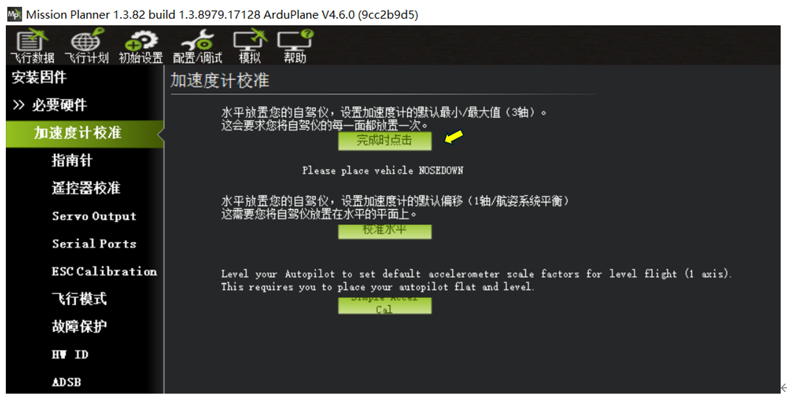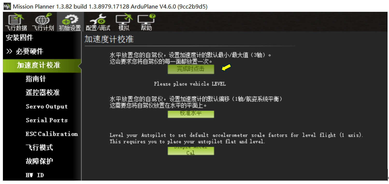 校准水平,可以在飞控装机后,飞机平放,然后执行一次校准水平即可。
