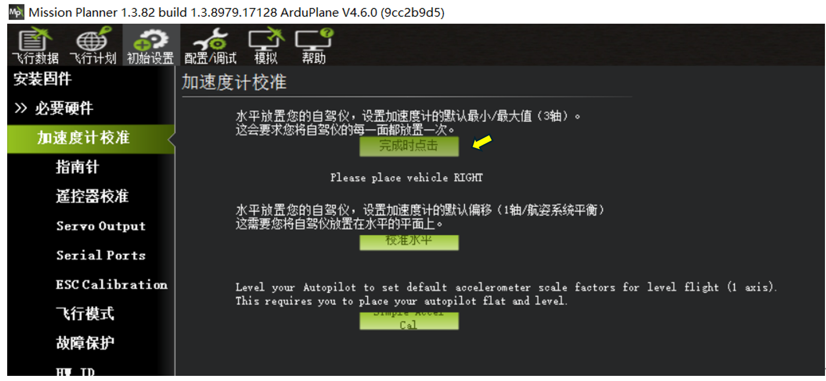 Please place vehicle RIGHT加速计校准--右面朝下