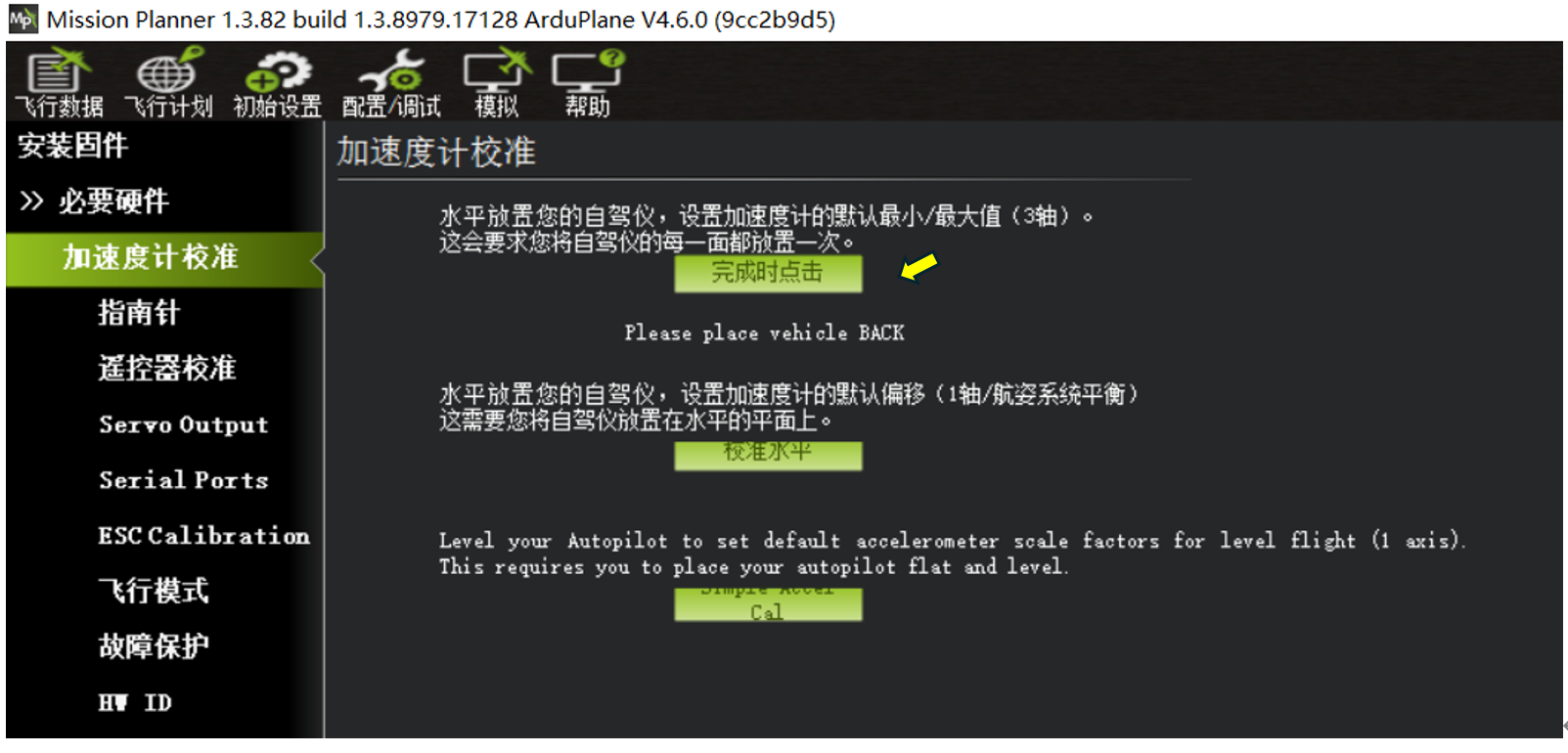 Please place vehicle NOSEUP加速计校准--后面朝下