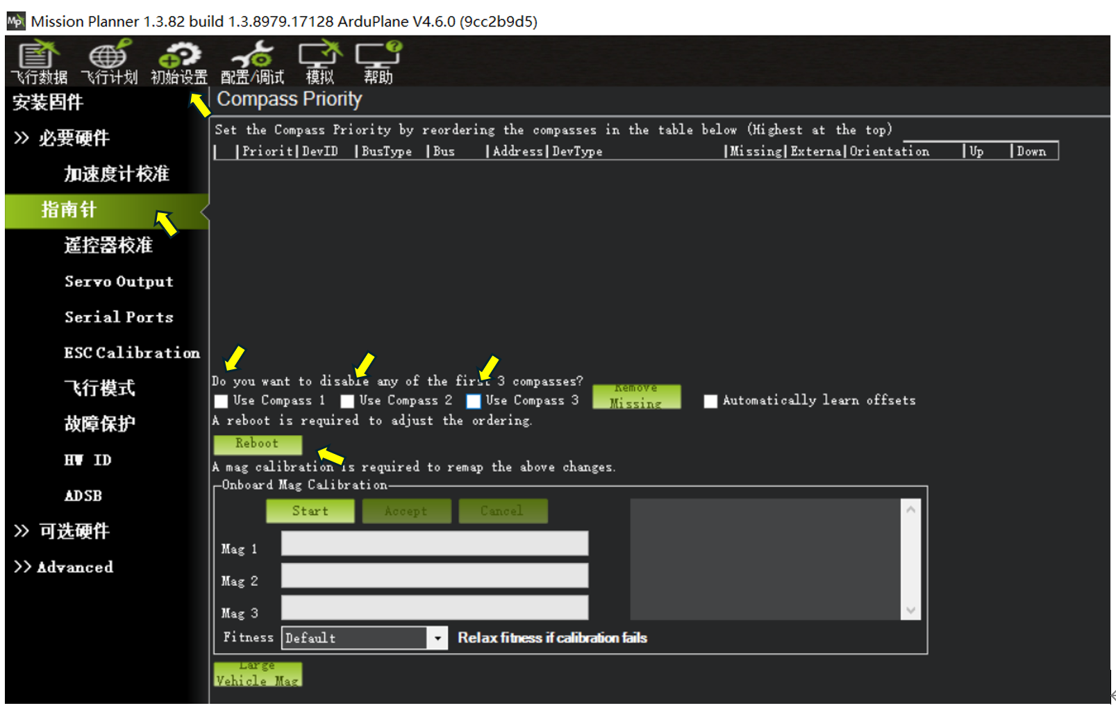 我们可以关闭飞控预开启的指南针选项。