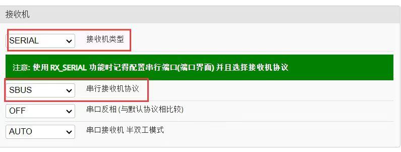 串行接收机协议(Serial Receiver Provider) → 选择 SBUS
