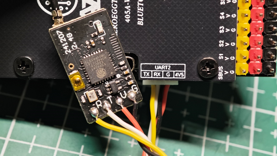 使用ELRS接收机,黑羊CRSF接收机,我们推荐与飞控的UART2端口连接,如上图。