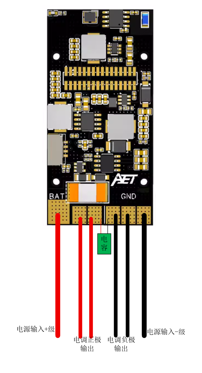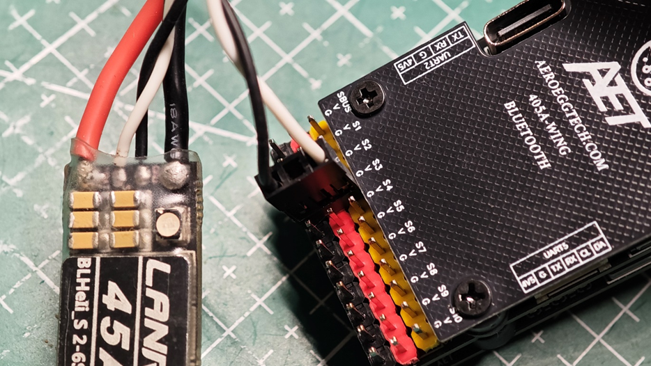 电调信号线接口一般为2.54杜邦3P接口,信号线深色一般为G(GND),对应连接飞控的S1~S10接口,浅色或白色为电调控制信号线S。部分带有内置BEC5V供电的电调,电调通电后信号线中间的5V电压输出容易与飞控内置的5V舵机供电BEC模块冲突,建议用户提前把此类电调信号线的5V线开,不要接入飞控。 对应飞控设置页面Servo Output的相关自定义设置。