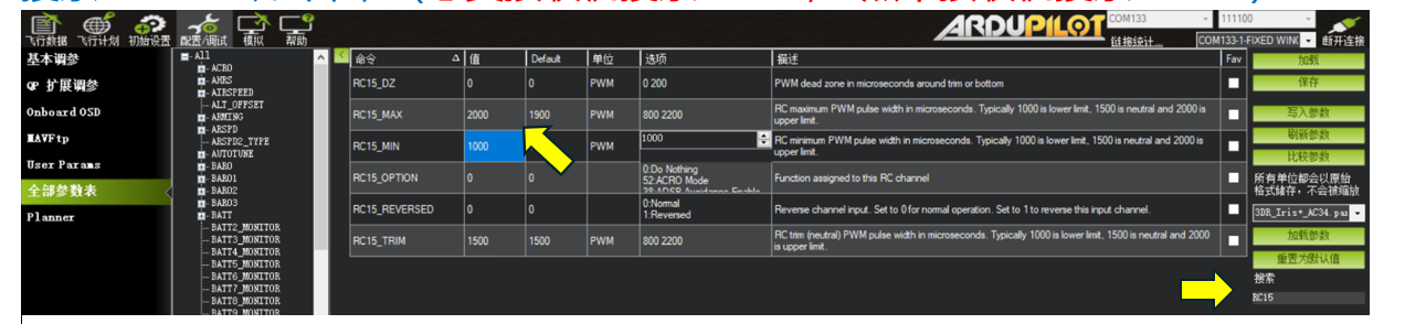 修改 RC15_MAX 2000 RC15_MIN 1000