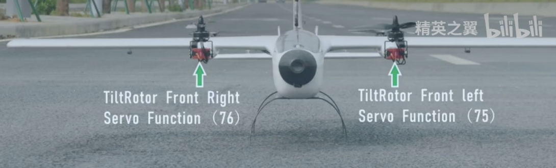 Servo10_Function 设置成76(右前倾转舵机TiltMotorFrontRight,从机尾往机头方向看)