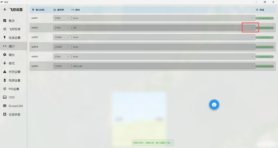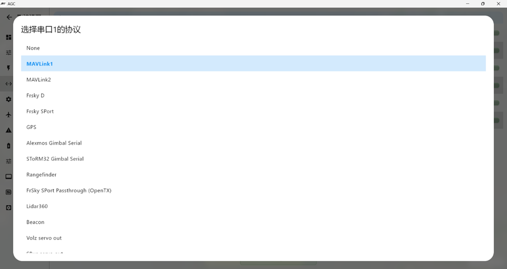 如果使用大疆V1、V2眼镜,对应大疆老款天空端及Vista,则使用UART1接口的Protcol值选择DJI FPV。