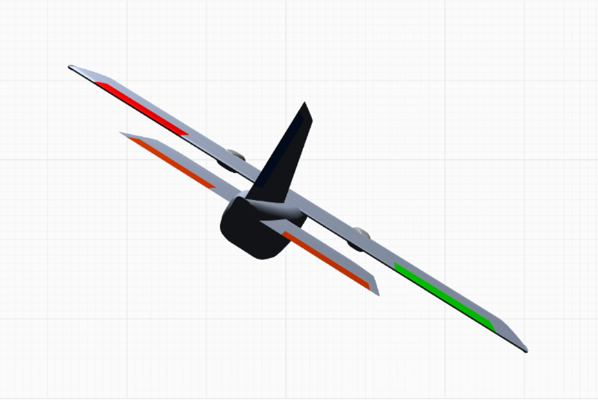 当飞机(或飞控)右倾,特别注意,用户可以闭上眼睛模拟一下自己坐在驾驶舱里左倾,驾驶窗看到的天空与地平线的变化。此时正确的姿态框显示如下: